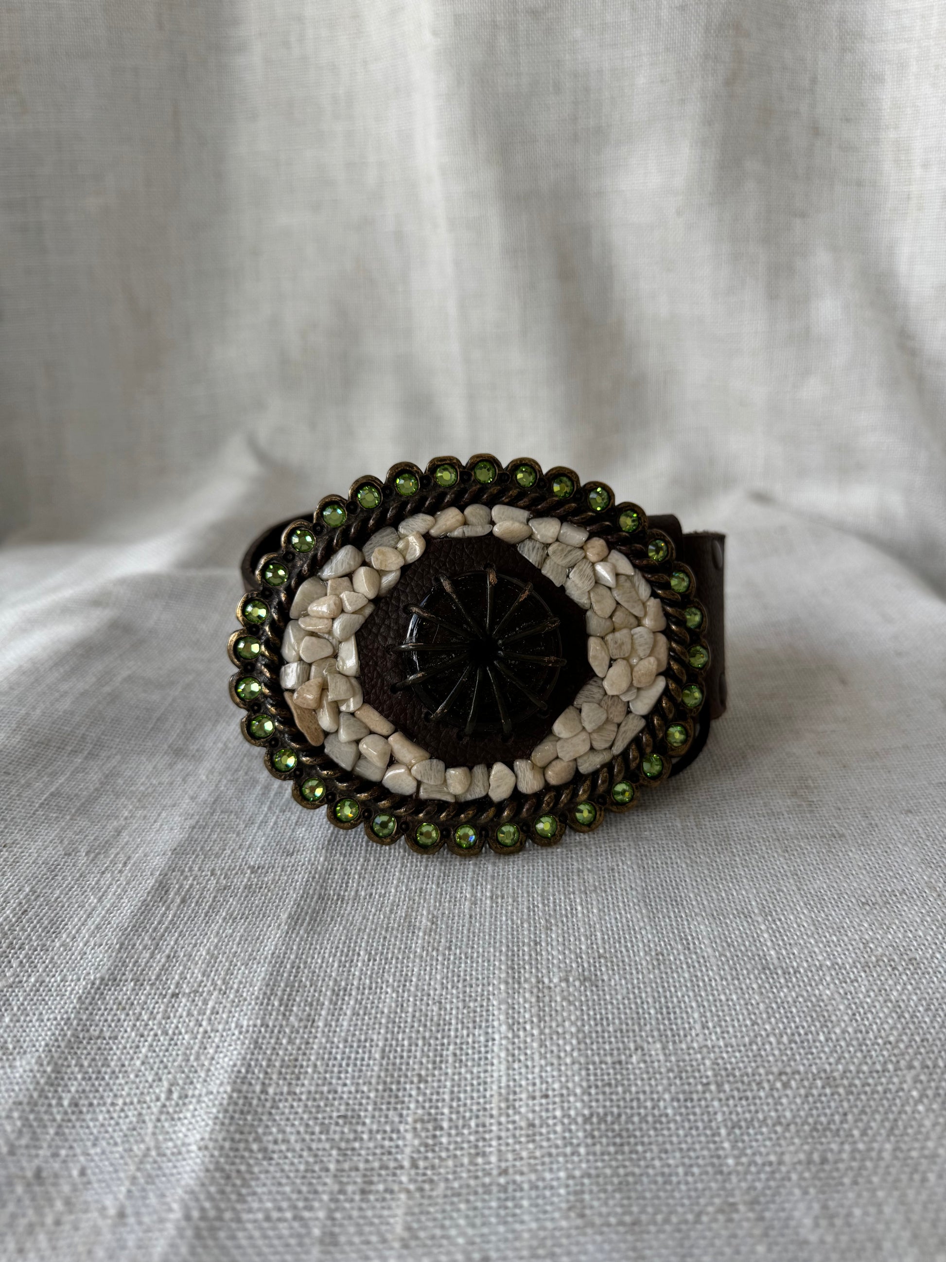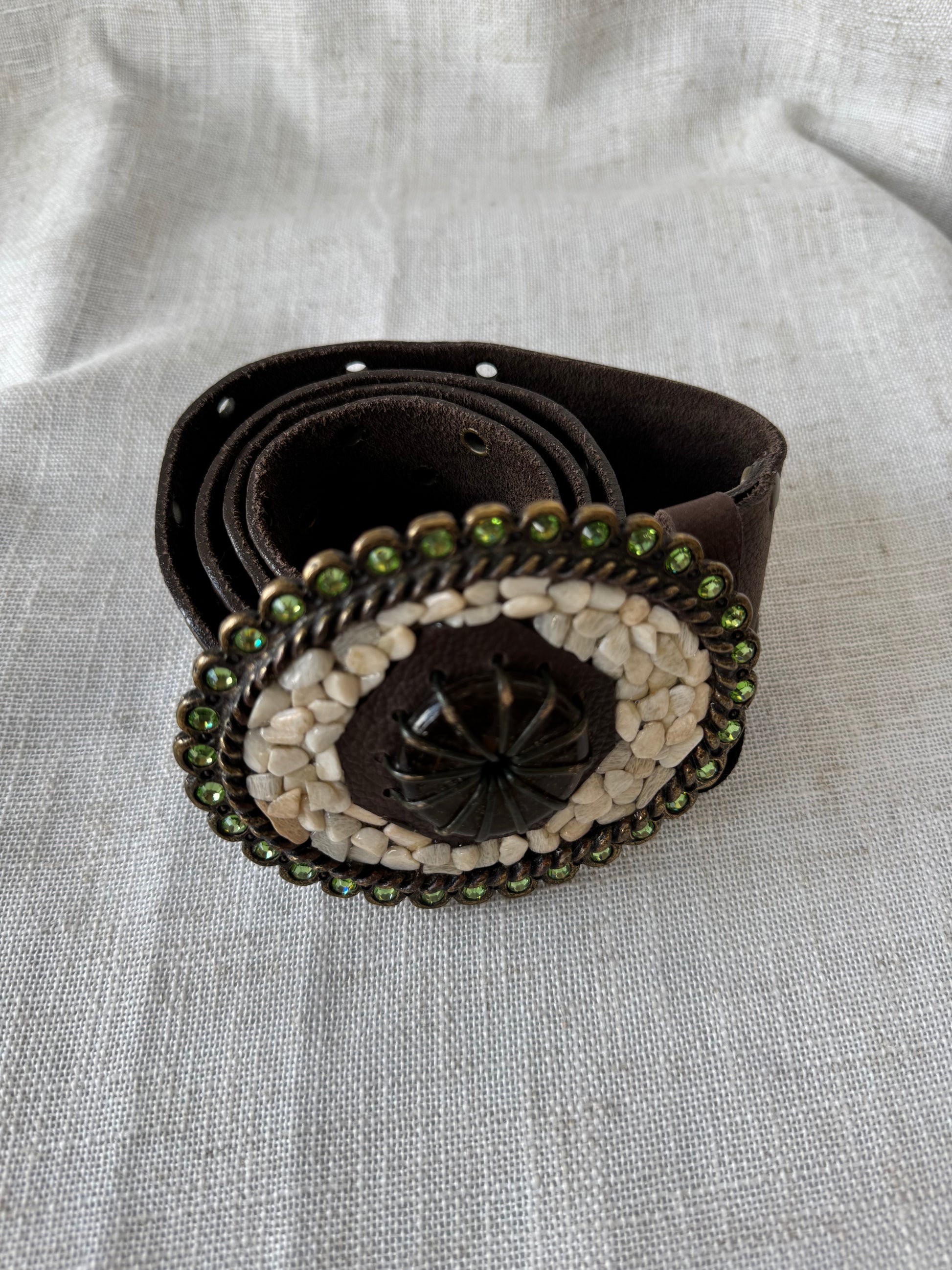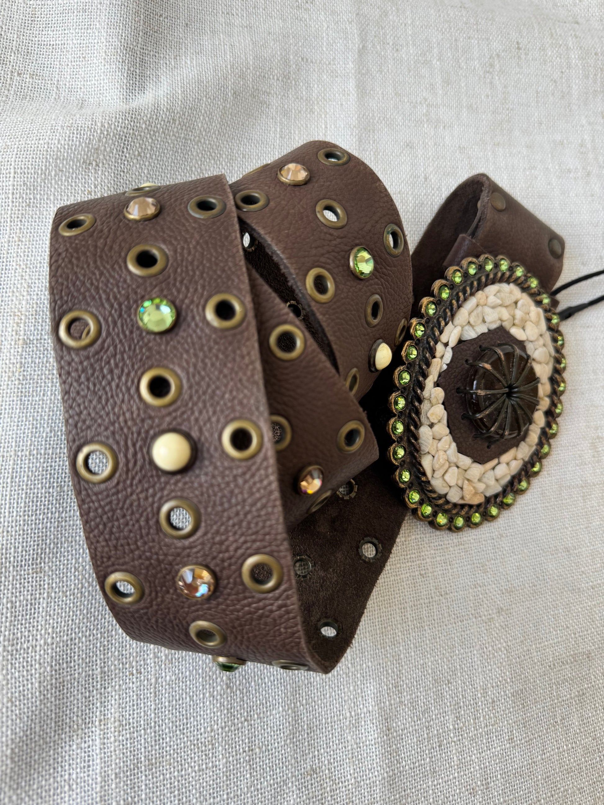 Brown Leather Belt with stone buckle