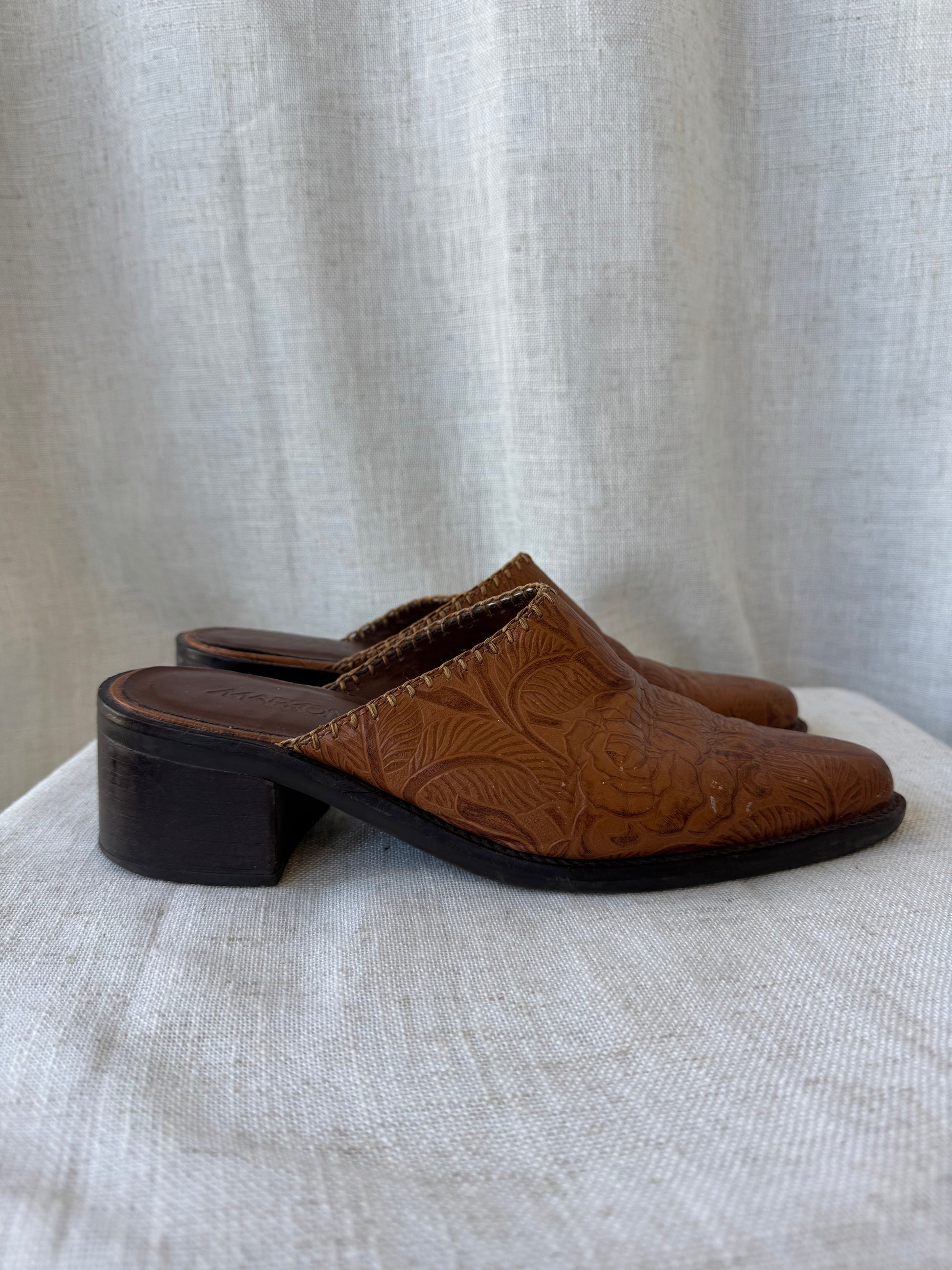 Tooled Leather Mules